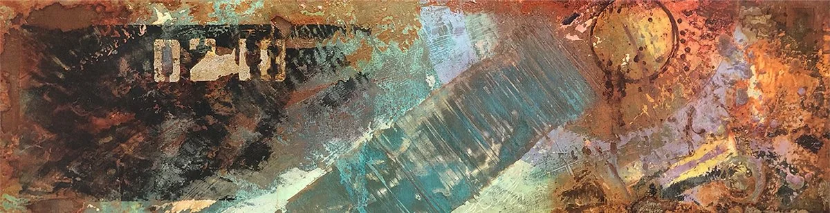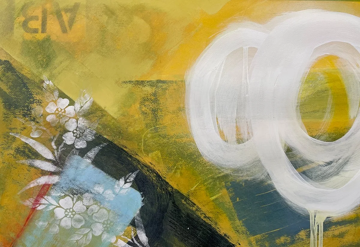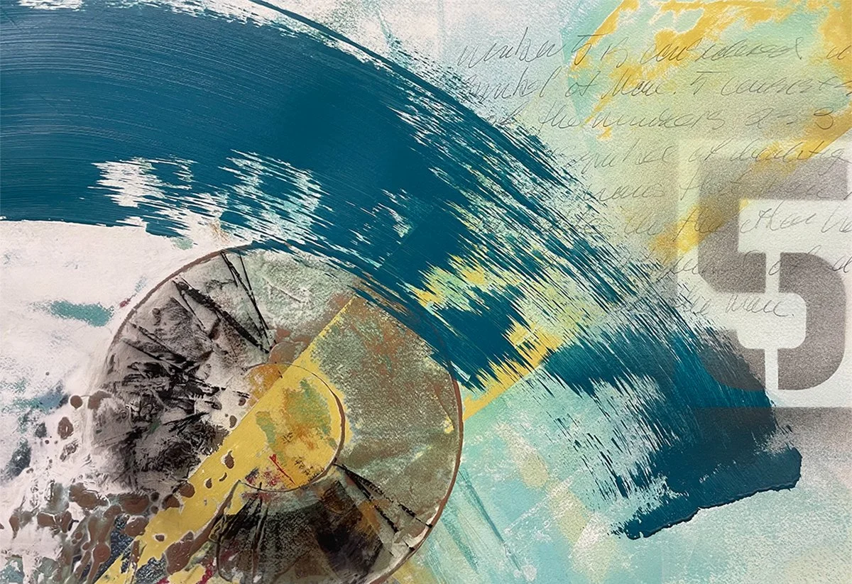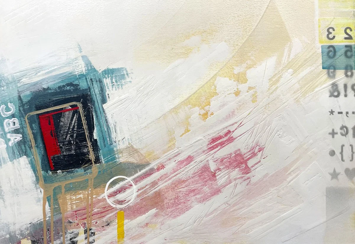 photo collage with applied mixed media on wood