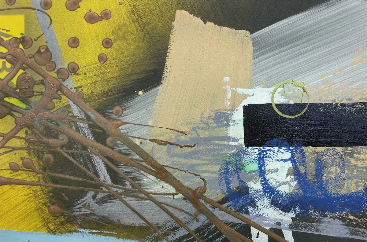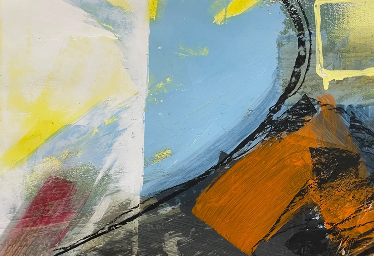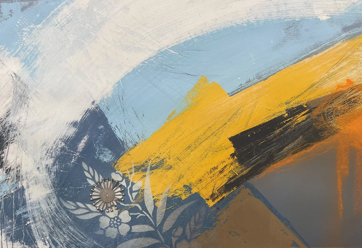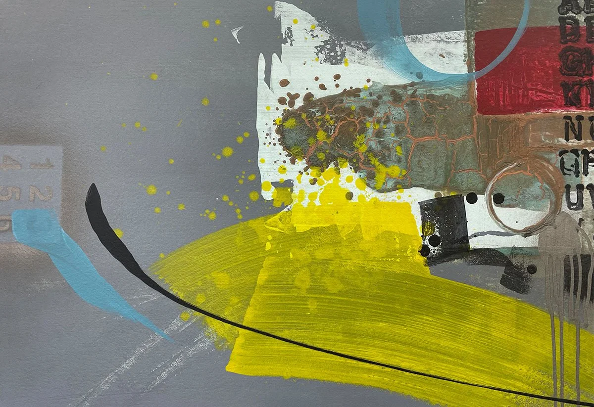 photo collage with applied mixed media on wood